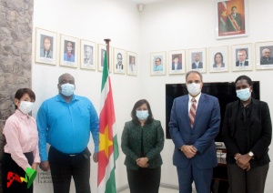 Dinsdag 16 februari 2021- De vertegenwoordigers van de Inter- American Development Bank (IDB), Antonio Gonçalves, en de Chief of Operations, Mariko Russel, hebben een beleefdheidsbezoek gebracht aan minister Rishma Kuldipsingh van Arbeid, Werkgelegenheid en Jeugdzaken (AW&J) waarbij de Directeur van Arbeid, Jimmy Belfor en de Onderdirecteur Arbeidsmarkt, Naomi Esajas-Friperson eveneens aanwezig waren. Beide partijen hebben voorstellen gedaan om samen projecten uit te voeren ten behoeve van de arbeidsmarkt en de jeugd. Hierbij zal een project worden uitgewerkt waarbij 1000 Surinamers, met name ook jongeren en werkzoekenden, gericht getraind worden voor de arbeidsmarkt. Het gaat hier om beroepen die specifieke technische kennis vereist en waarin het lokaal aanbod op de Surinaamse arbeidsmarkt tekort schiet. Het bezoek heeft op maandag 15 februari plaatsgevonden.