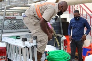 Woensdag 31 maart 2021-De Surinaamsche Waterleiding Maatschappij raakt vaker geconfronteerd met klachten vanuit de samenleving over vervuild drinkwater. Naar aanleiding van deze klachten heeft zij besloten tot aan huis wateropslagtanks, de zogenoemde durotanks, een onderhoudsbeurt te geven. Met dit project “Durotank Wassen” is op dinsdag 30 maart 2021 een aanvang gemaakt. De eer viel te beurt aan het huishouden van president Chandrikapersad Santokhi op Lelydorp in het district Wanica. Het staatshoofd toonde zich ingenomen met dit initiatief en zei dat het goed is oor de dienstverlening naar de samenleving toe, maar meer nog voor verhoging van de volksgezondheid.