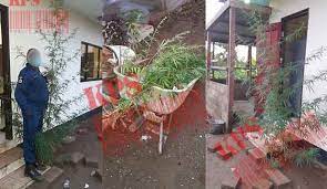 Deze man werd ervan verdacht marihuana te planten op zijn erf. Toen de politie ter plaatse was, stelde zij een onderzoek in op het terrein. Daarbij troffen de wetsdienaren vijf marihuana bomen aan, waarvan één meer dan drie meter hoog was.