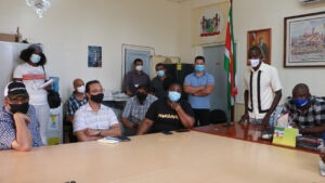 Dinsdag 15 juni 2021 – De ministers Riad Nurmohamed van Openbare Werken (OW), Parmanand Sewdien van Landbouw, Veeteelt & Visserij (LVV) en Gracia Emanuel van Regionale Ontwikkeling en Sport (ROS) bezochten verschillende locaties in het westelijke deel van Suriname. Om de wateroverlastproblemen structureel op te lossen heeft het clusterteam van ministers op zaterdag 12 juni 2021 het district Coronie bezocht. De status van het kokosdistrict is middels een presentatie op het districtscommissariaat aan alle drie de ministers voorgehouden.