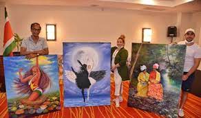 Zondag 22 augustus 2021- In hotel Courtyard by Marriott, is op vrijdag 20 augustus de kunstexpo Suriname-Cuba geopend. Het was een moment van Cubaanse muziek en actionpainting van de Surinaamse en de Cubaanse vlag, door de artiesten Julio Quintana en Ardie Setropawiro. Collega kunstenaar Lilibet Quintero heeft gezongen. Hun onderlinge vriendschap heeft geleid tot dit leuke kunstmoment.