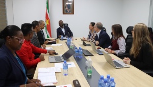 Minister André Misiekaba van Volksgezondheid, Welzijn en Arbeid ontving vrijdag 27 maart 2026 een delegatie van de Inter-American Development Bank (IDB), in aanwezigheid van onderminister